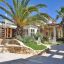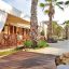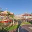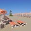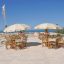 La spiaggia curatissima, poche tende a pagoda a righe bianche e arancioni sono disposte con attenzione intorno ad una oasi di palme e fiori direttamente nel bel mezzo della spiaggia.
